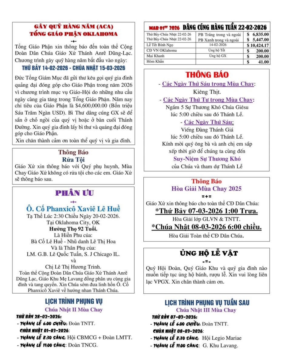 CHÀO MỪNG QUÝ VỊ ĐÉN VỚI FACEBOOK PAGE CỦA GX THÁNH ANRÊ DŨNG LẠC OKLAHOMA CITY, OK