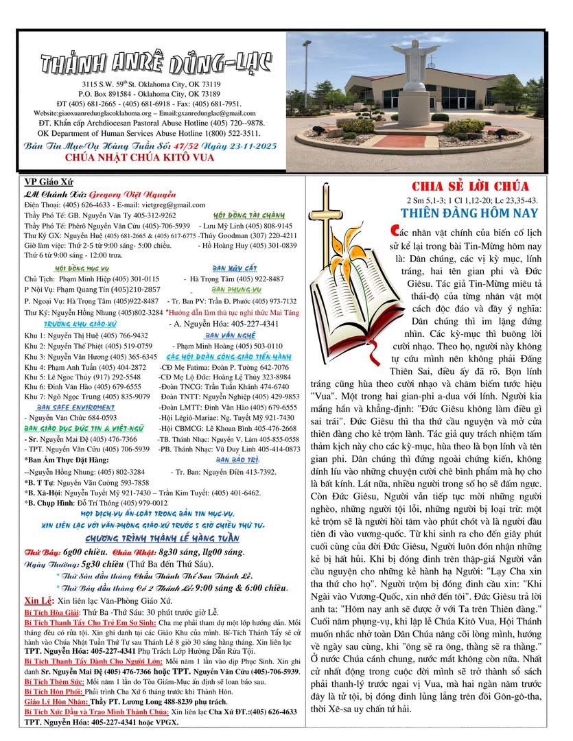CHÀO MỪNG QUÝ VỊ ĐÉN VỚI FACEBOOK PAGE CỦA GX THÁNH ANRÊ DŨNG LẠC OKLAHOMA CITY, OK