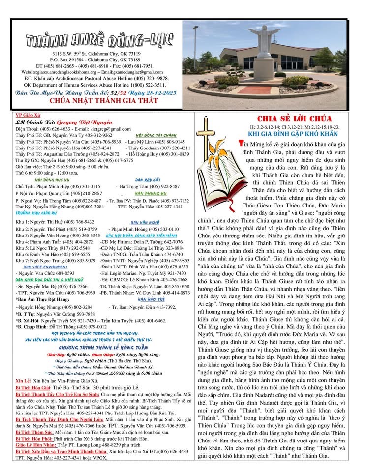 CHÀO MỪNG QUÝ VỊ ĐÉN VỚI FACEBOOK PAGE CỦA GX THÁNH ANRÊ DŨNG LẠC OKLAHOMA CITY, OK